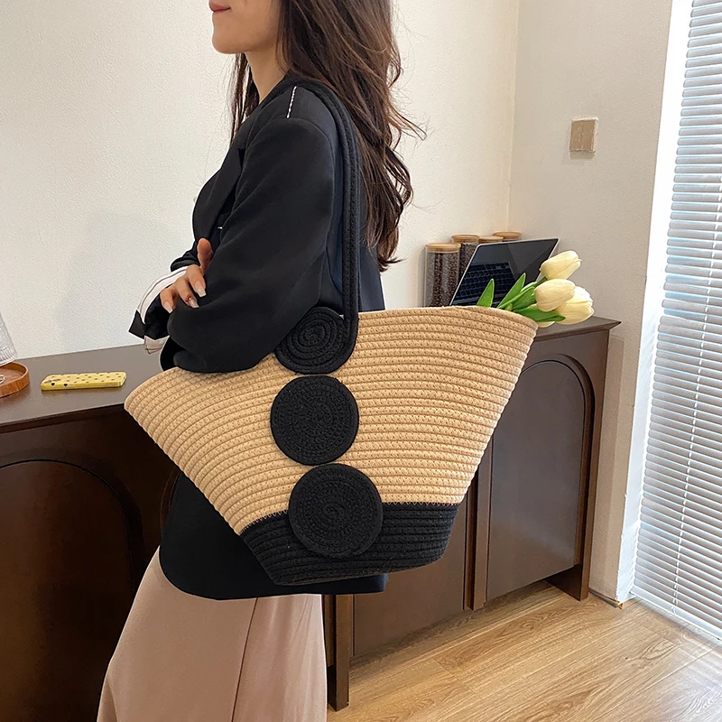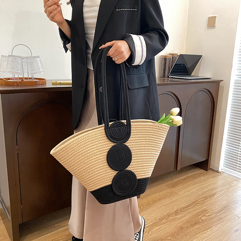Fashion Large Tote Straw Handbags Designer Woven Women Shoulder Bags Bohemian Beach Bag Travel Sac A Main